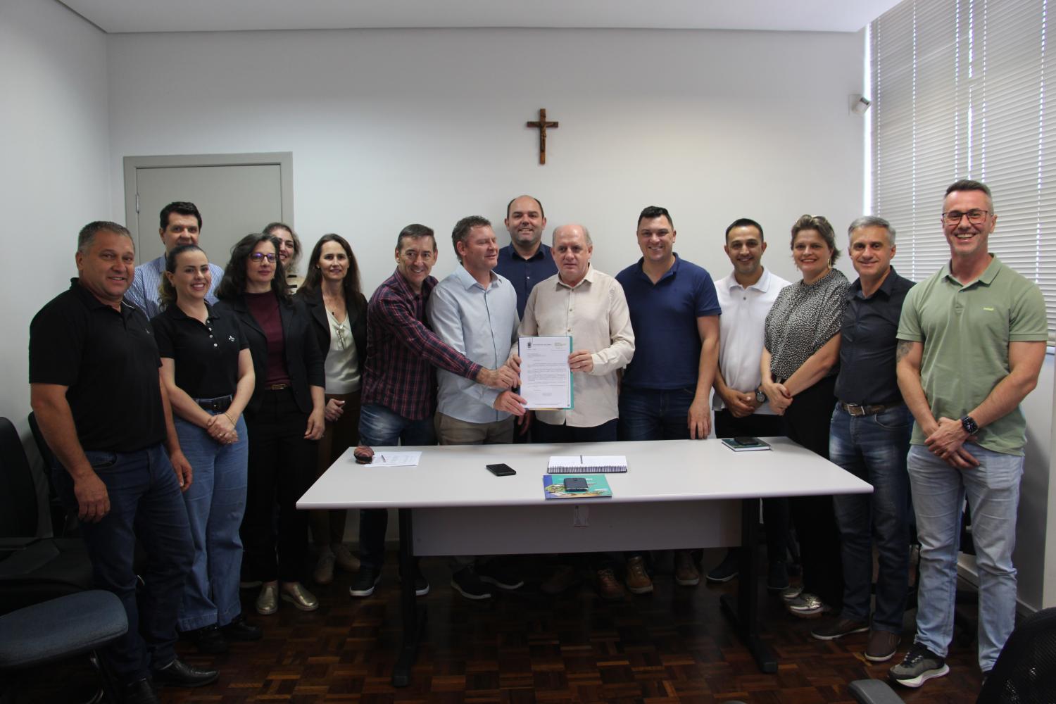 A Câmara de Vereadores de Concórdia recebeu, nesta sexta-feira (31), a visita do prefeito Edilson Massocco e da equipe técnica da Prefeitura para a entrega oficial do Projeto de Lei Orçamentária Anual (LOA) de 2026. A entrega foi realizada no gabinete da presidência da Câmara, com a presença do presidente Closmar Zagonel, membros da mesa diretora e demais vereadores.