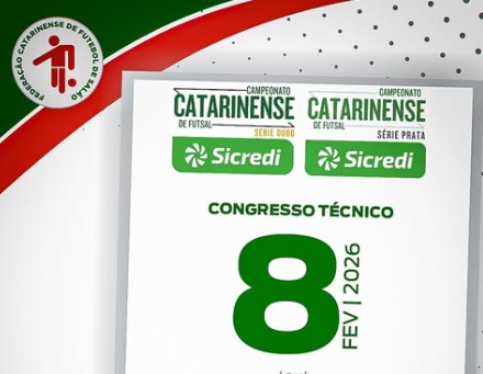 A Federação Catarinense de Futsal (FCFs) vai realizar no dia 8 de fevereiro em Joinville os congressos técnicos das Série Ouro e Prata do campeonato Catarinense de Futsal edição de 2026.