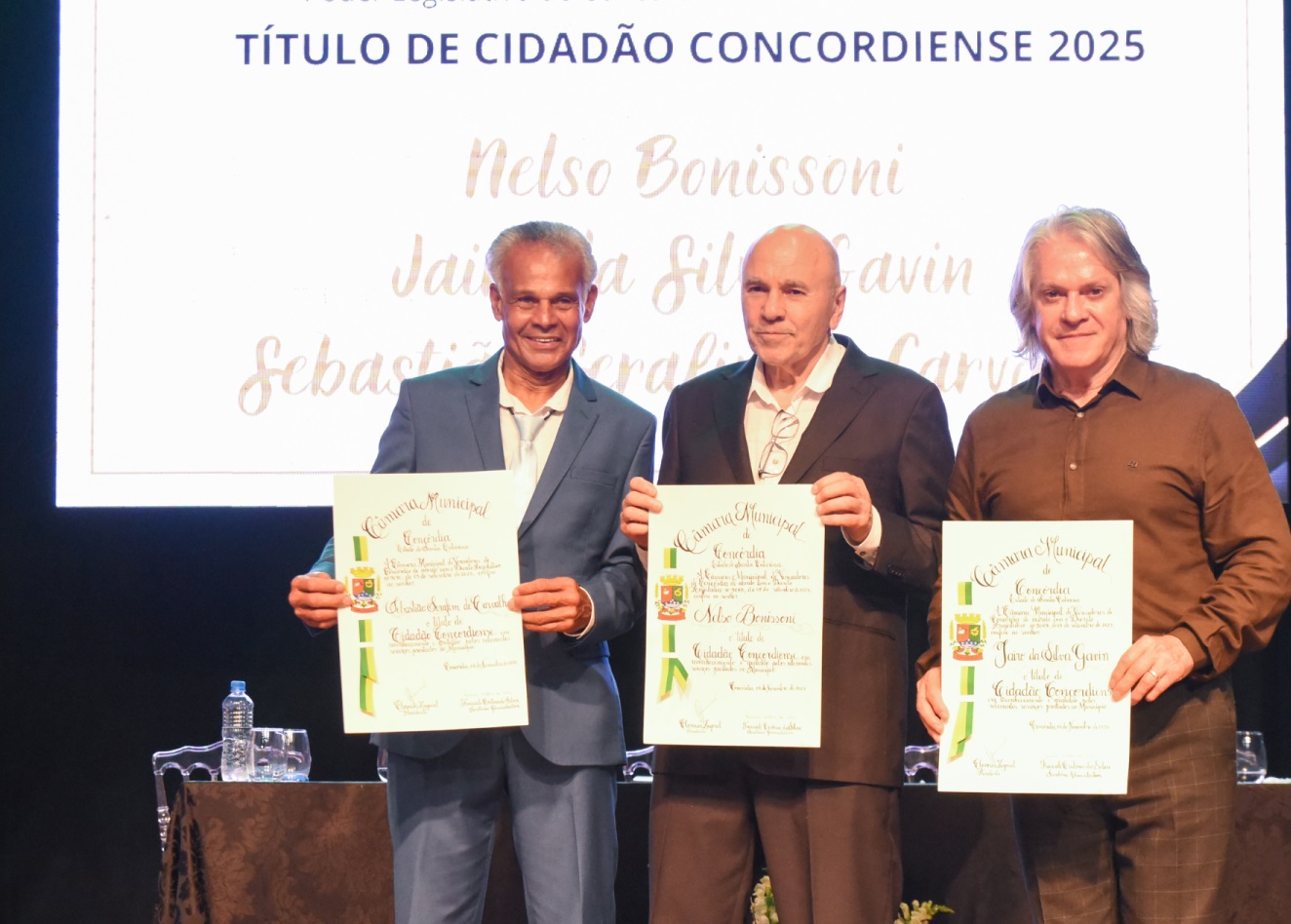 Três personalidades recebem o Título de Cidadão Concordiense 2025