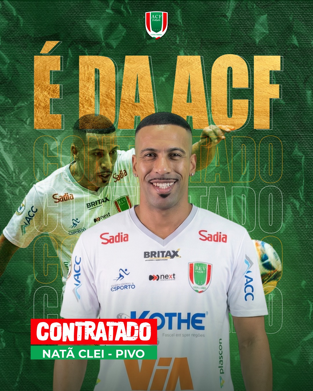 A ACF Futsal anuncia a contratação do pivô Natã Clei, atleta que chega para fortalecer o elenco com presença ofensiva, experiência e faro de gol.