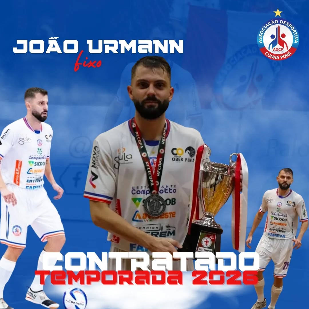 O fixo João Victor Guliani Urmann, foi contratado pelo ADCP Cunha Porã. Ele retorna para a equipe para disputa da Primeira Diviç~sao do catarinense de Futsal organizado pela Federação Catarinense de Futsal.