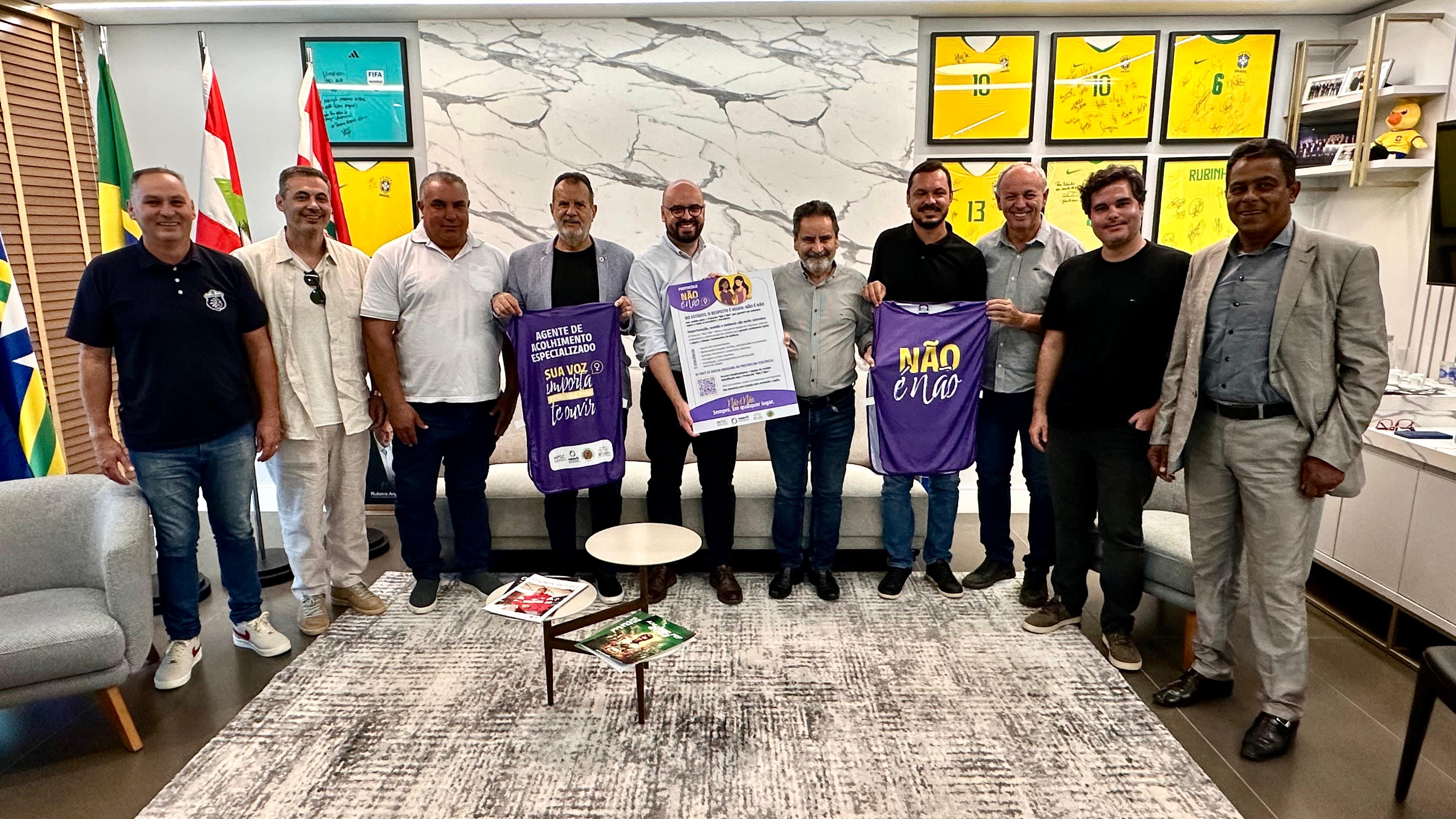 Clubes que disputarão a Série B do Campeonato Catarinense decidiram aderir ao Protocolo “Não é Não” durante reunião realizada na quinta-feira (9/4), na sede da Federação Catarinense de Futebol (FCF). O encontro foi promovido pela SC Clubes e pela FCF e reuniu representantes das equipes participantes da competição. Os jogos começam no dia 22 de abril.